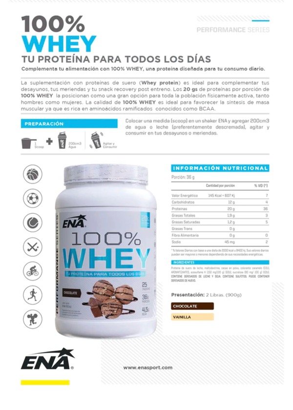 Complementá tu alimentación con 100% WHEY, una proteína diseñada para tu consumo diario.